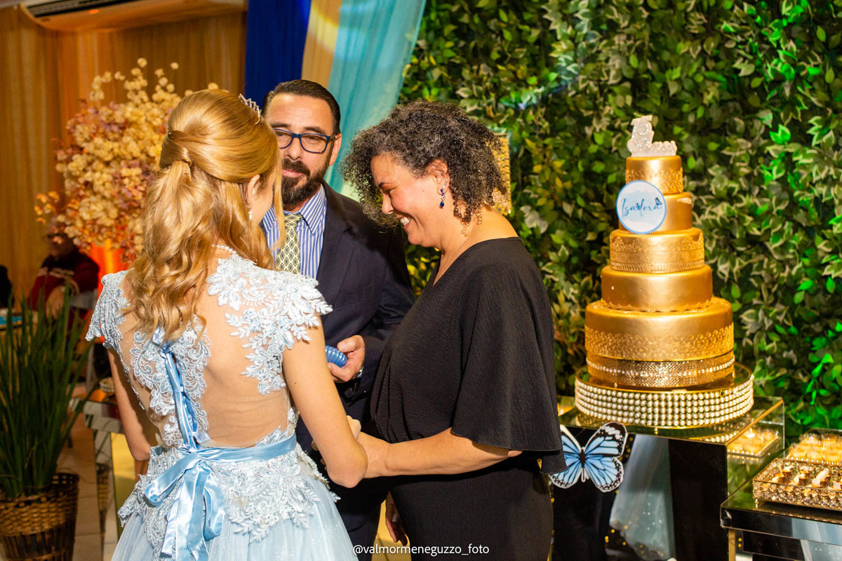 A debutante foi presenteada com um lindo anel pelos seus padrinhos, que representava o carinho e apoio que eles sempre tiveram por ela. Além disso, ganhou sapatos novos, símbolo de passos firmes e confiantes em sua jornada futura. E é claro, não poderia faltar a tradicional valsa dos 15 anos, onde Isadora brilhou e mostrou toda a sua elegância.