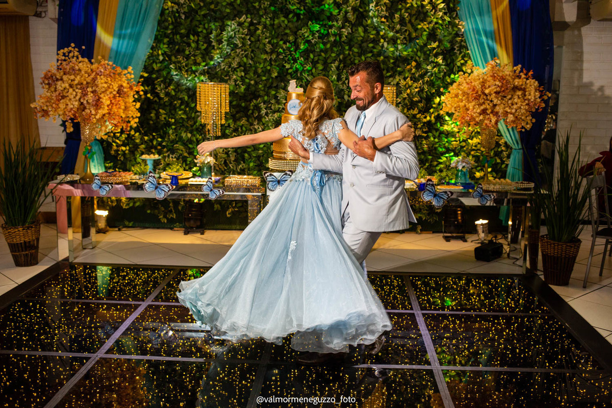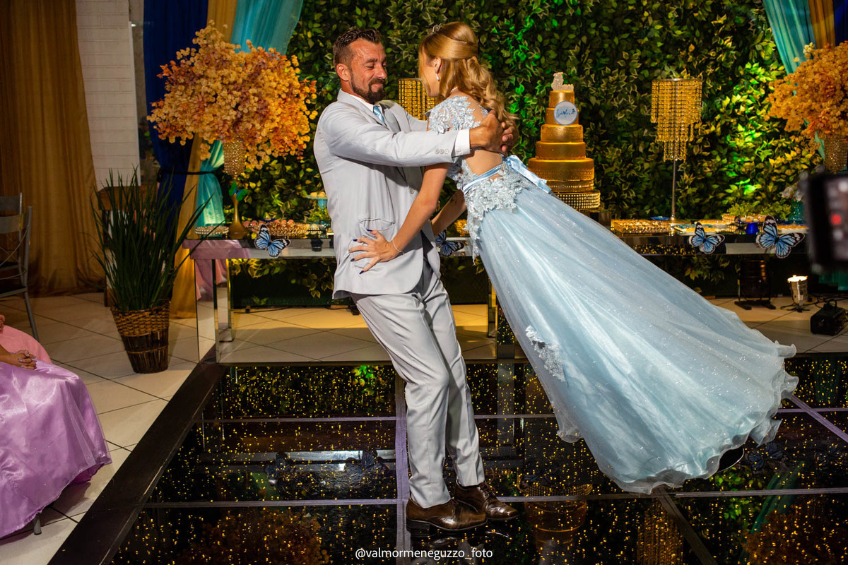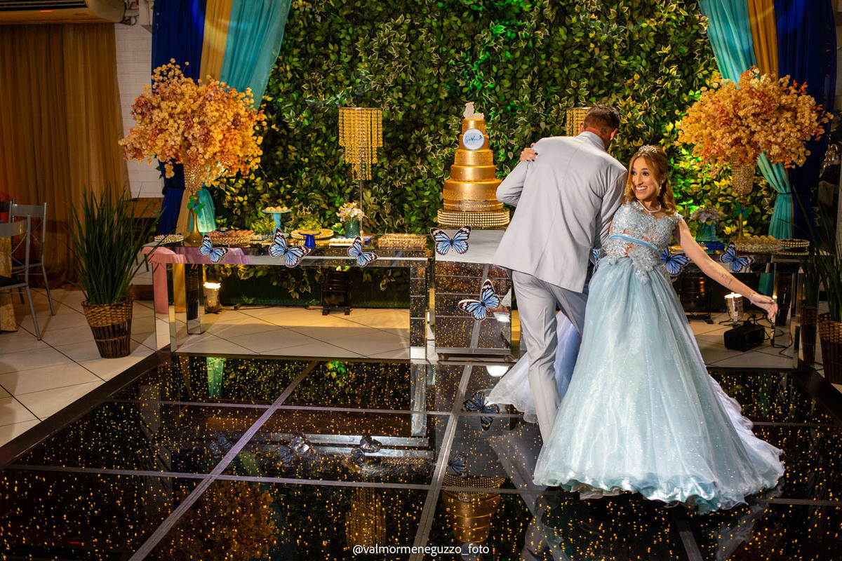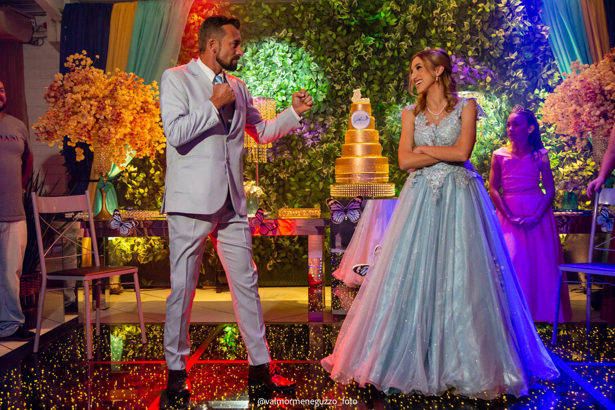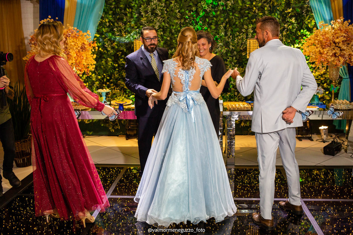 A debutante foi presenteada com um lindo anel pelos seus padrinhos, que representava o carinho e apoio que eles sempre tiveram por ela. Além disso, ganhou sapatos novos, símbolo de passos firmes e confiantes em sua jornada futura. E é claro, não poderia faltar a tradicional valsa dos 15 anos, onde Isadora brilhou e mostrou toda a sua elegância.