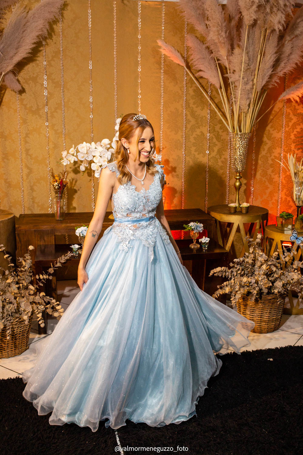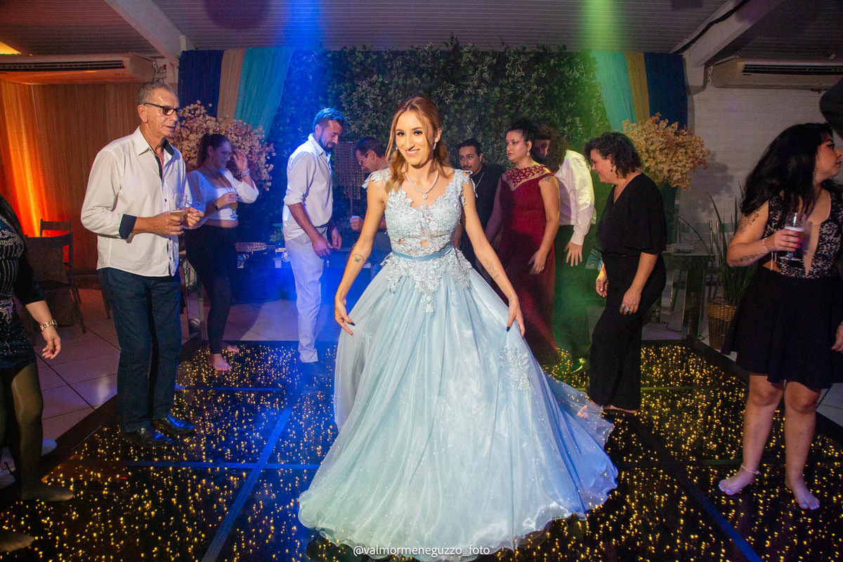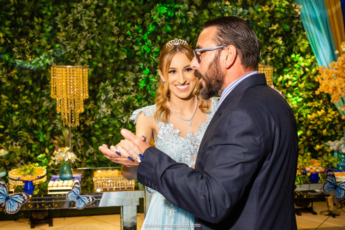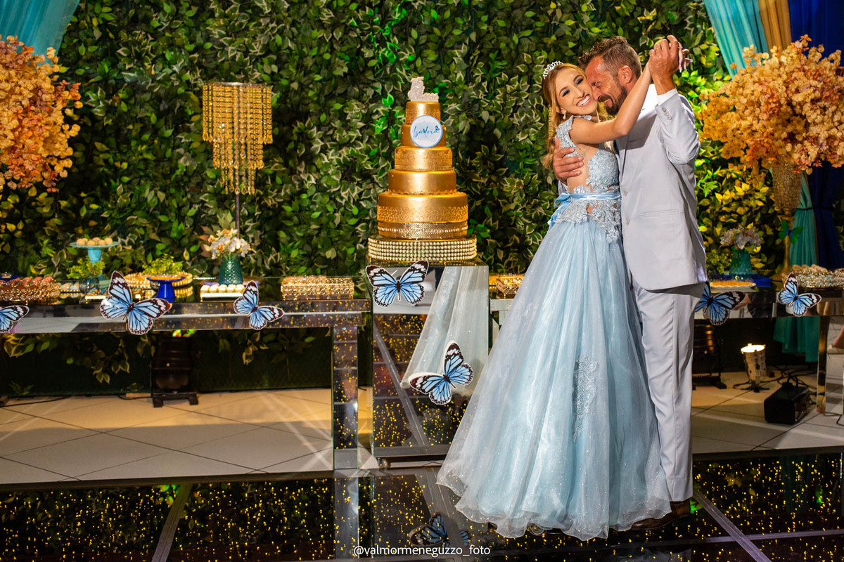 A debutante foi presenteada com um lindo anel pelos seus padrinhos, que representava o carinho e apoio que eles sempre tiveram por ela. Além disso, ganhou sapatos novos, símbolo de passos firmes e confiantes em sua jornada futura. E é claro, não poderia faltar a tradicional valsa dos 15 anos, onde Isadora brilhou e mostrou toda a sua elegância.